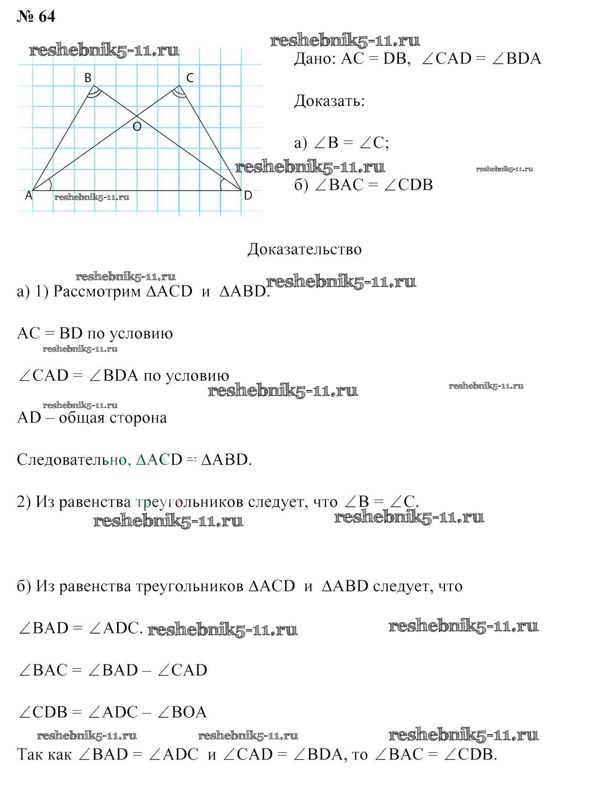 Готовая домашняя работа с ответами по Геометрии за 7 класс Казаков Учебник Народная асвета 2017 - Задачи 64