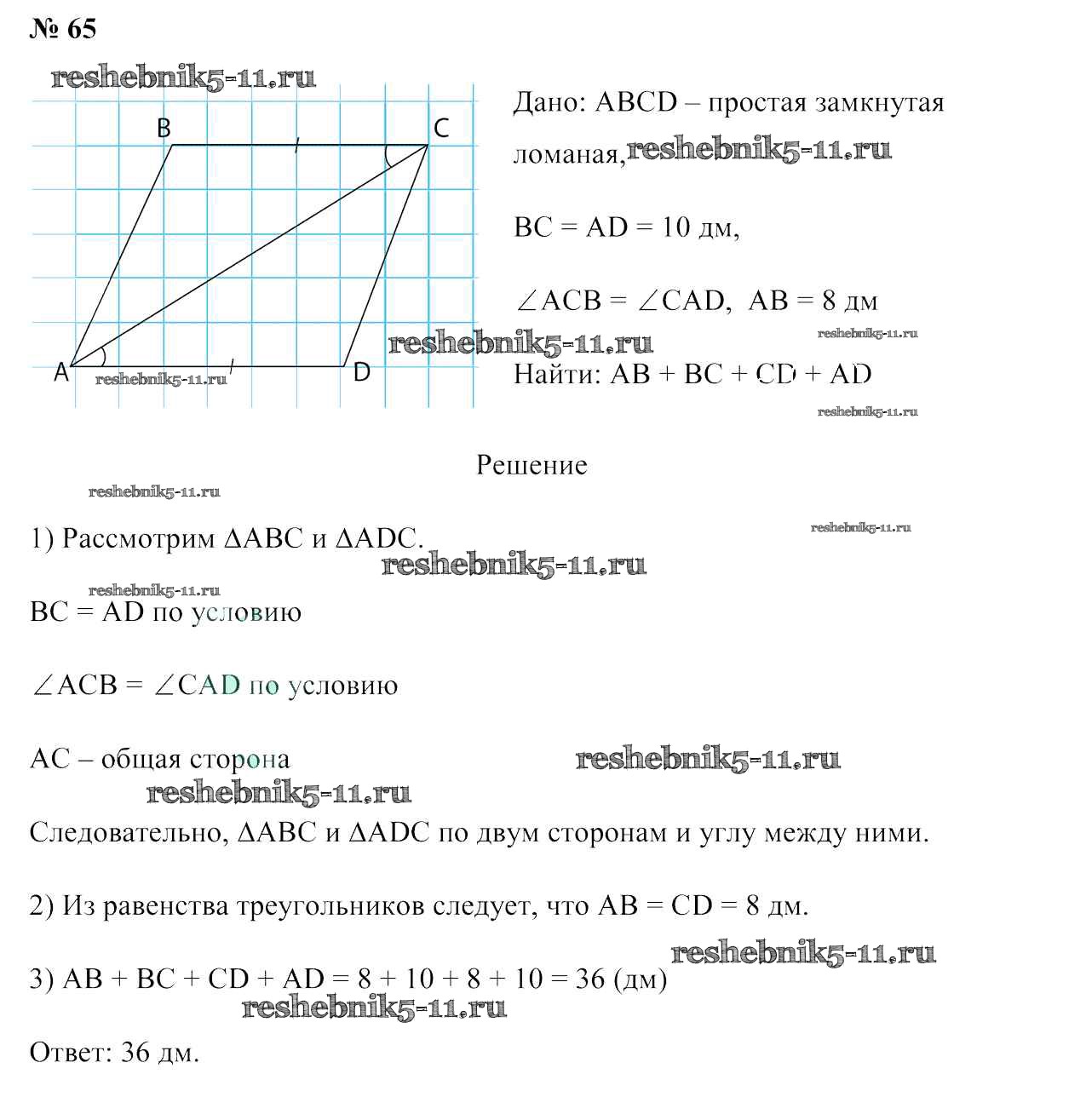 Готовая домашняя работа с ответами по Геометрии за 7 класс Казаков Учебник Народная асвета 2017 - Задачи 65