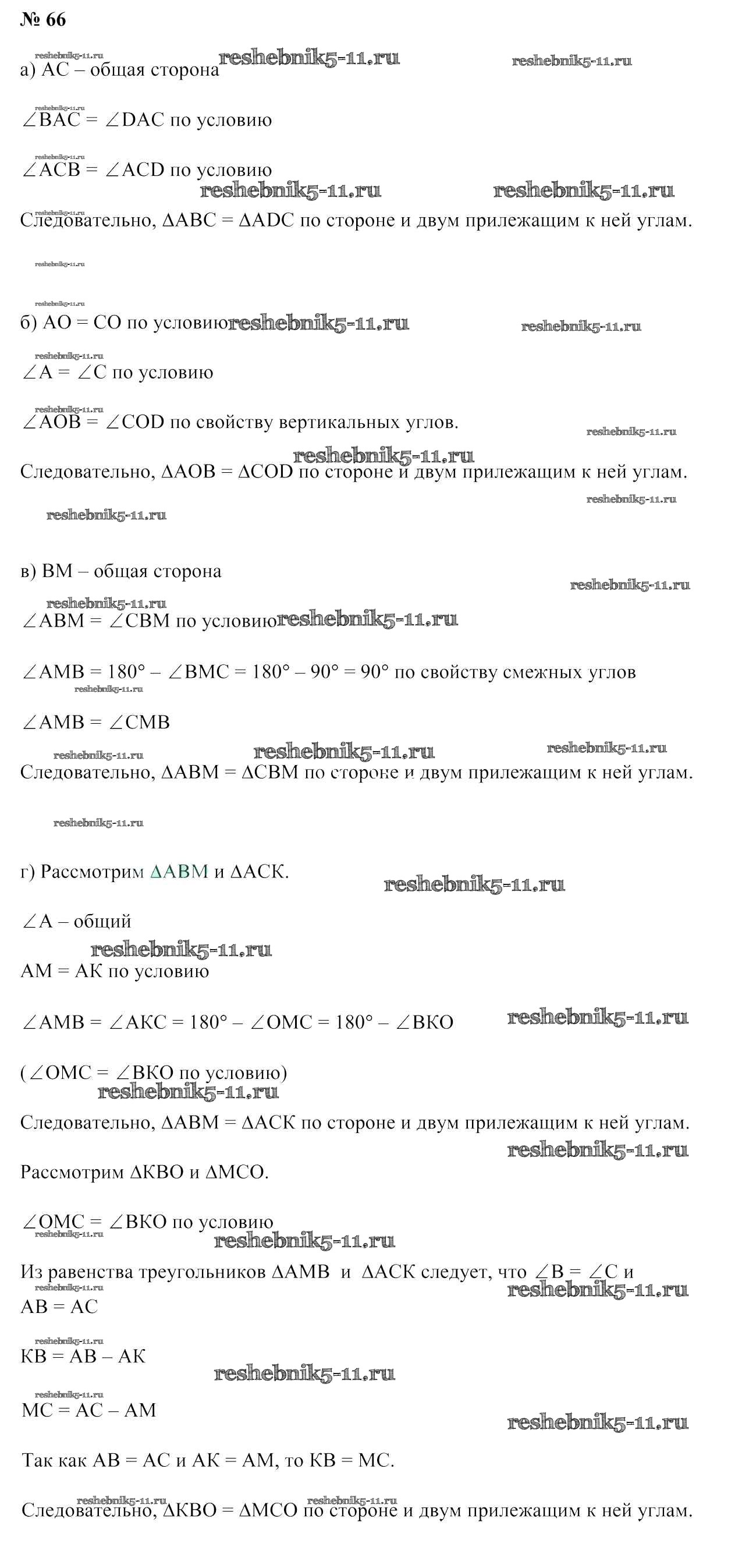 Готовая домашняя работа с ответами по Геометрии за 7 класс Казаков Учебник Народная асвета 2017 - Задачи 66