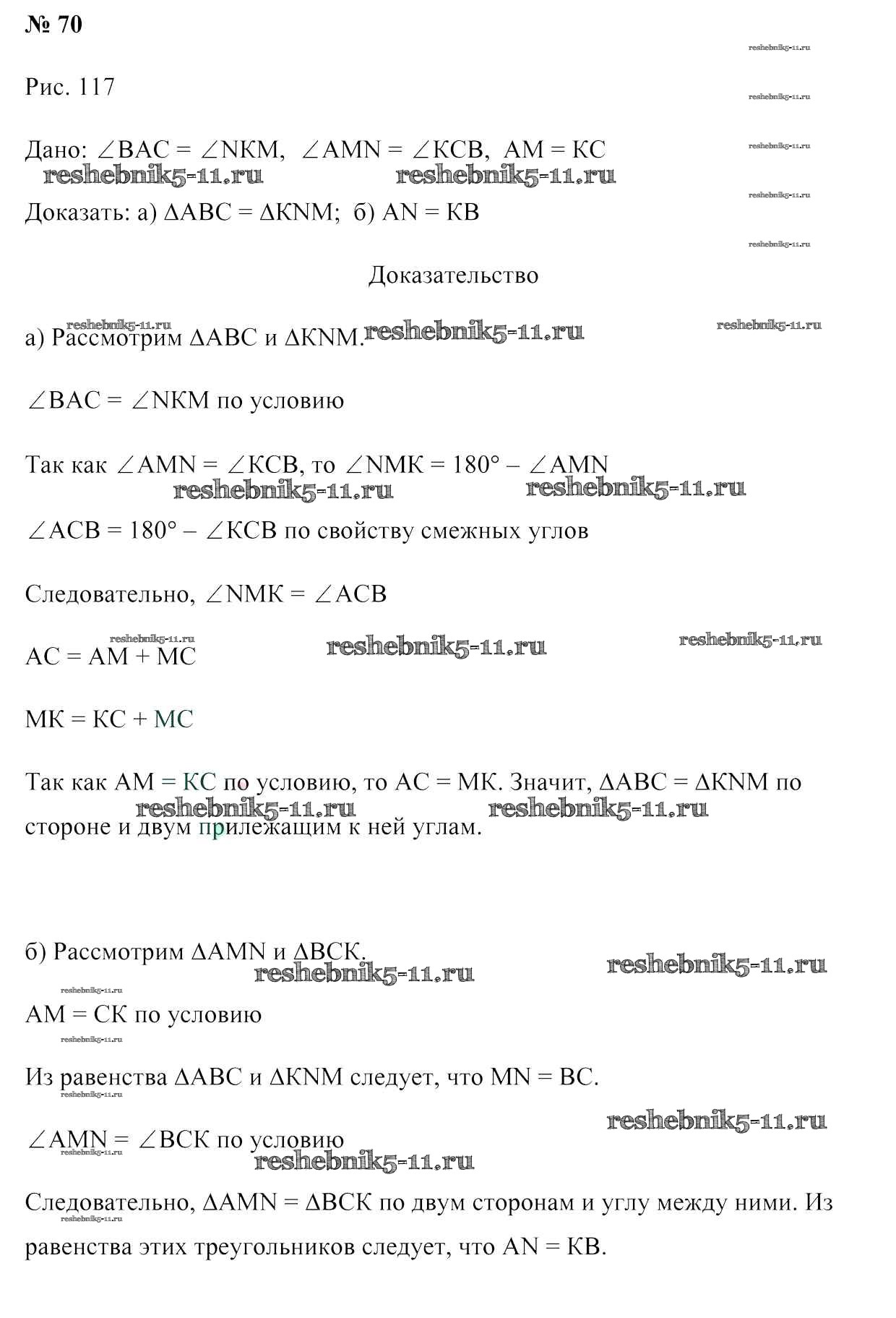 Готовая домашняя работа с ответами по Геометрии за 7 класс Казаков Учебник Народная асвета 2017 - Задачи 70