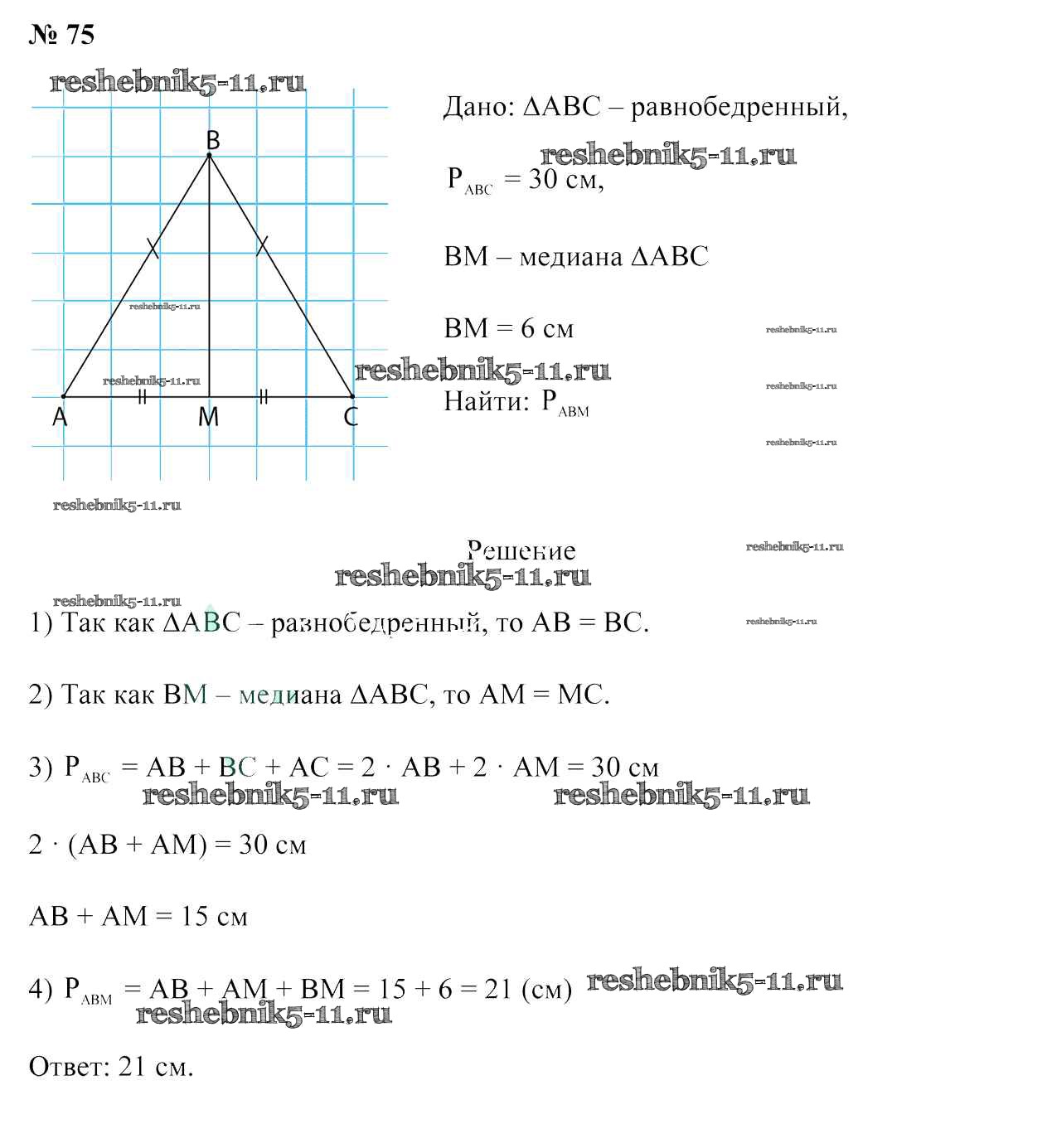 Готовая домашняя работа с ответами по Геометрии за 7 класс Казаков Учебник Народная асвета 2017 - Задачи 75