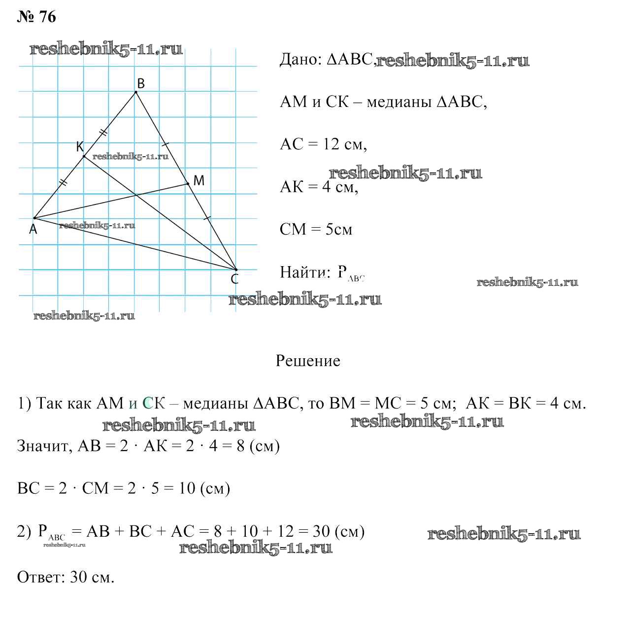 Готовая домашняя работа с ответами по Геометрии за 7 класс Казаков Учебник Народная асвета 2017 - Задачи 76