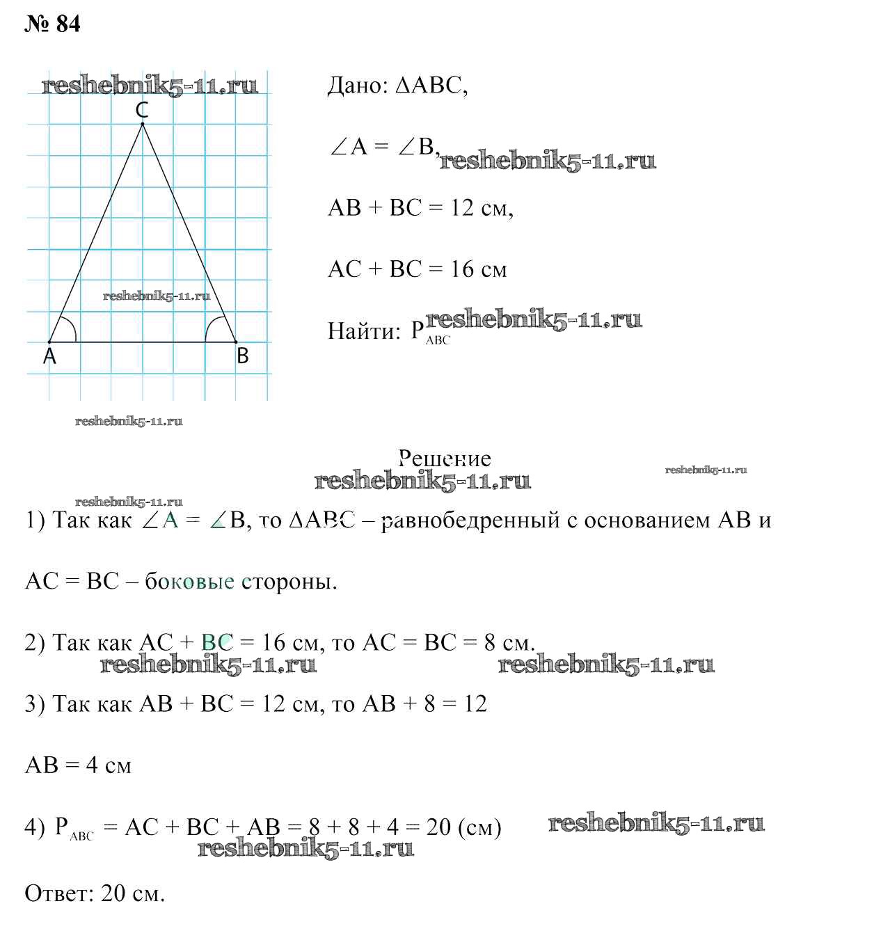 Готовая домашняя работа с ответами по Геометрии за 7 класс Казаков Учебник Народная асвета 2017 - Задачи 84
