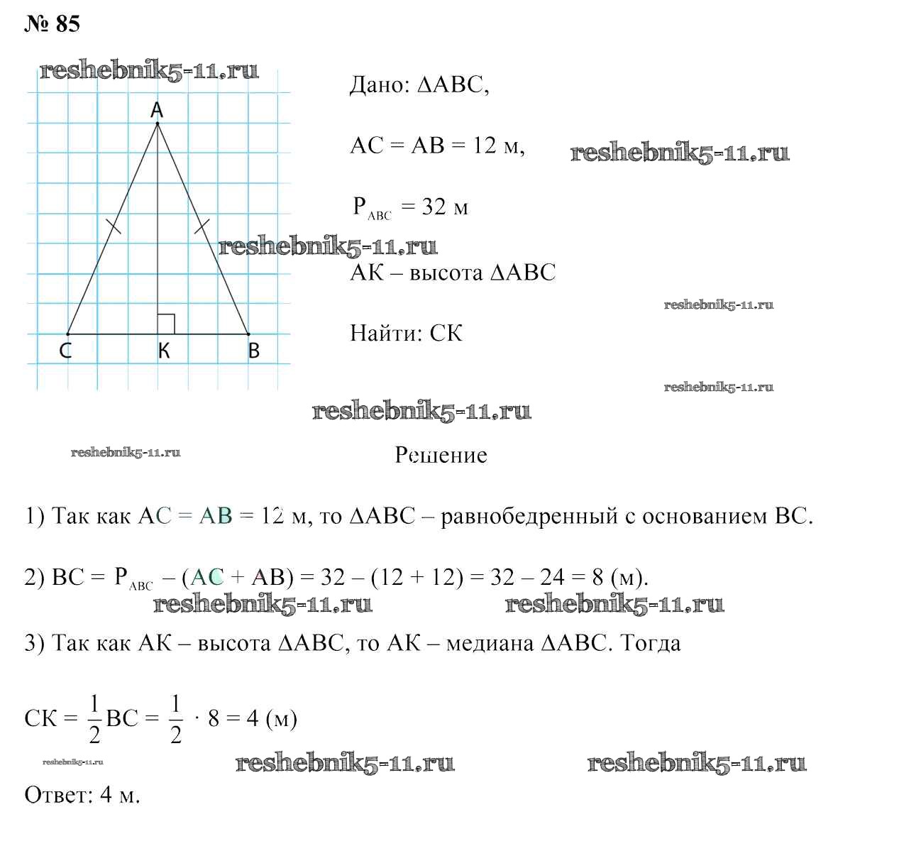 Готовая домашняя работа с ответами по Геометрии за 7 класс Казаков Учебник Народная асвета 2017 - Задачи 85