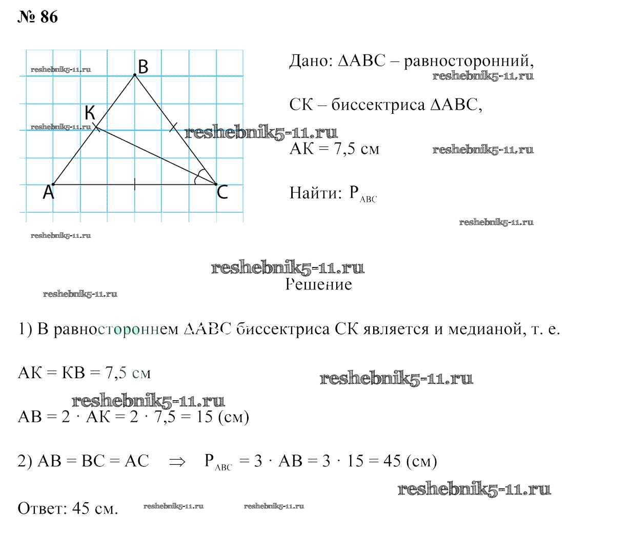 Готовая домашняя работа с ответами по Геометрии за 7 класс Казаков Учебник Народная асвета 2017 - Задачи 86