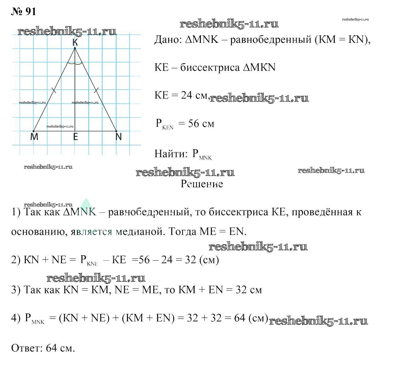 Готовая домашняя работа с ответами по Геометрии за 7 класс Казаков Учебник Народная асвета 2017 - Задачи 91