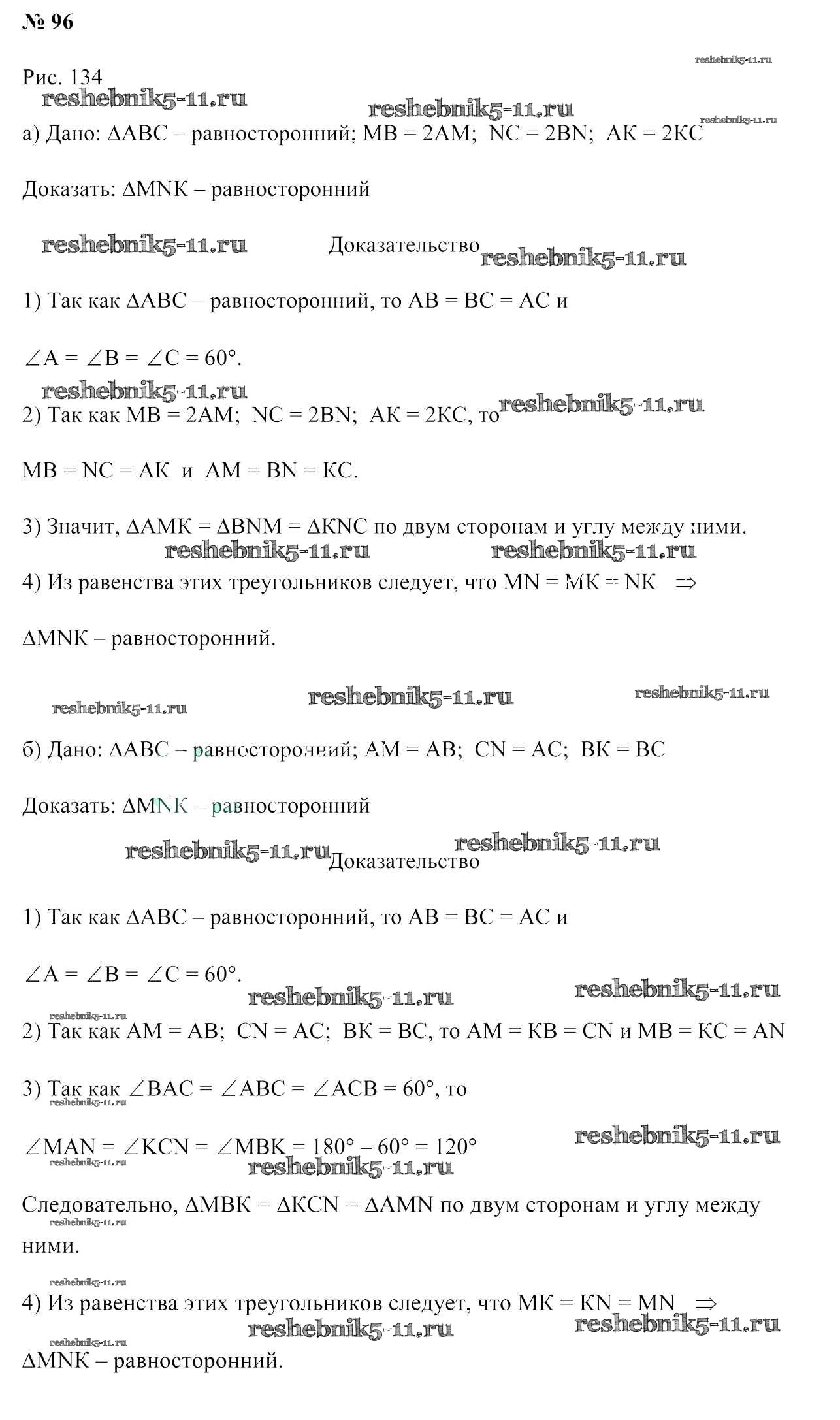 Готовая домашняя работа с ответами по Геометрии за 7 класс Казаков Учебник Народная асвета 2017 - Задачи 96