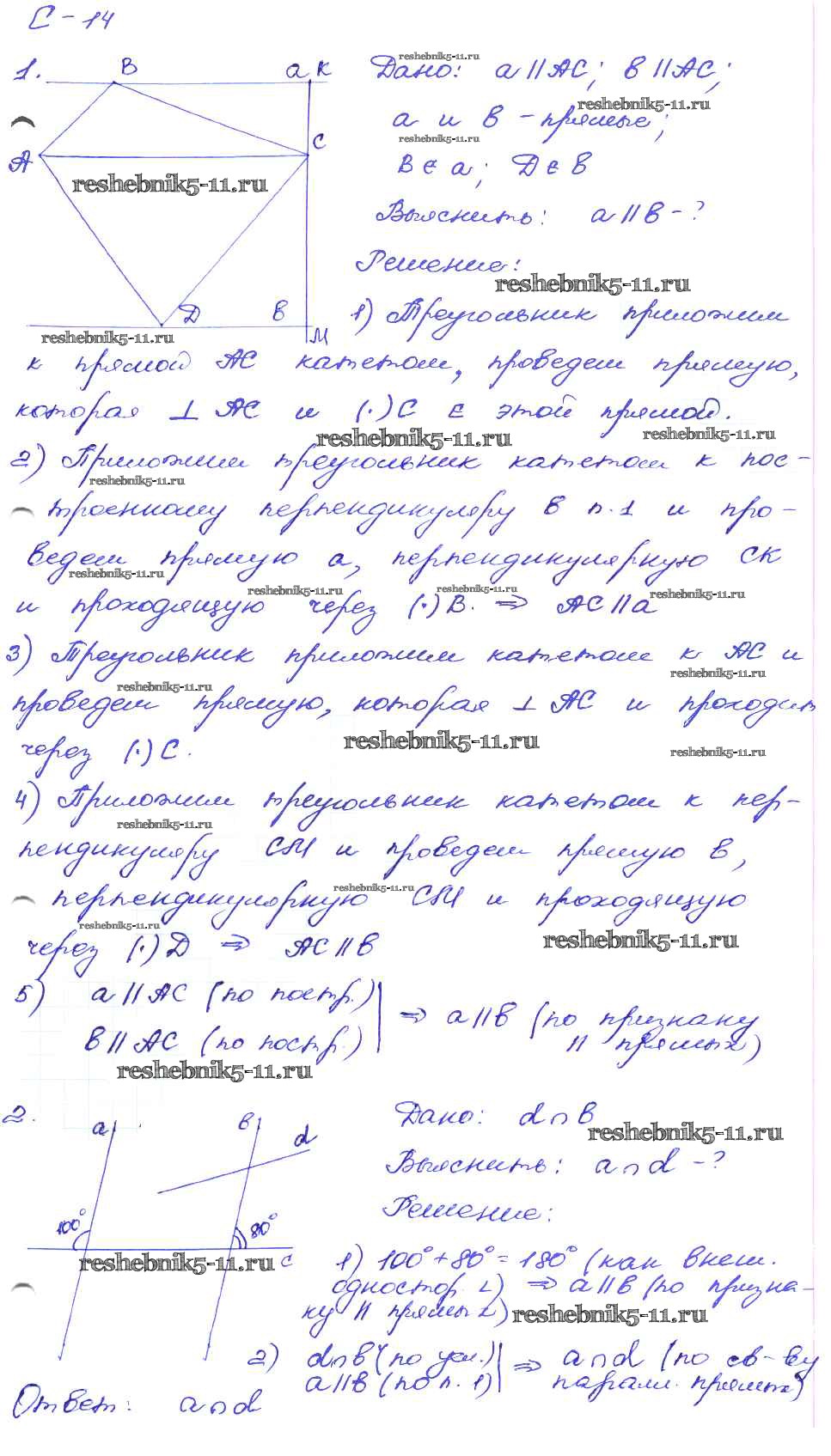 Готовая домашняя работа с ответами по Геометрии за 7 класс Зив, Мейлер Дидактические материалы Просвещение 2016 ФГОС - СР-14. Варианты 1