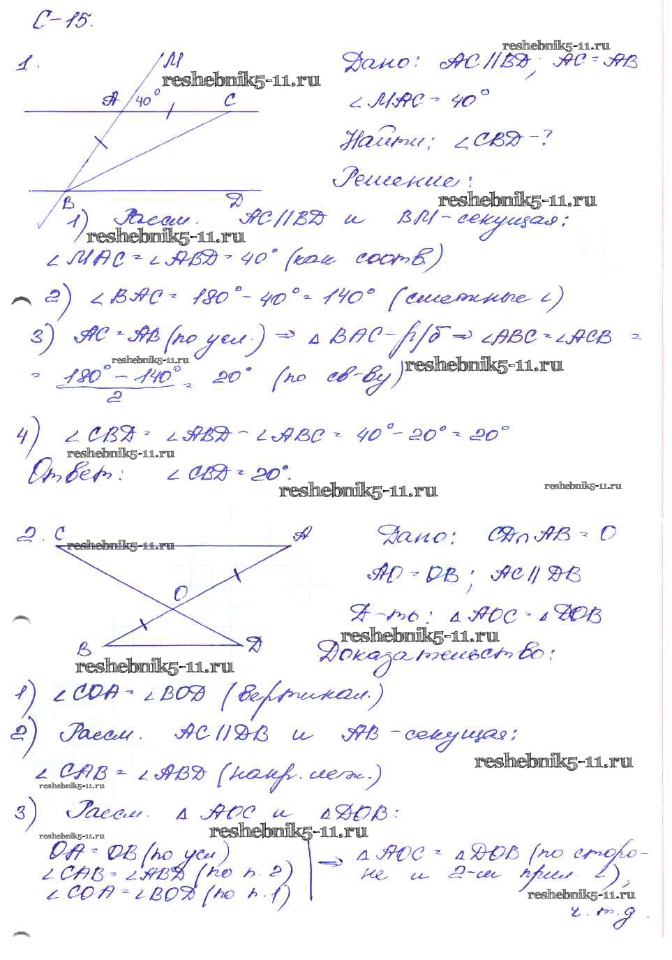 Готовая домашняя работа с ответами по Геометрии за 7 класс Зив, Мейлер Дидактические материалы Просвещение 2016 ФГОС - СР-15. Варианты 3