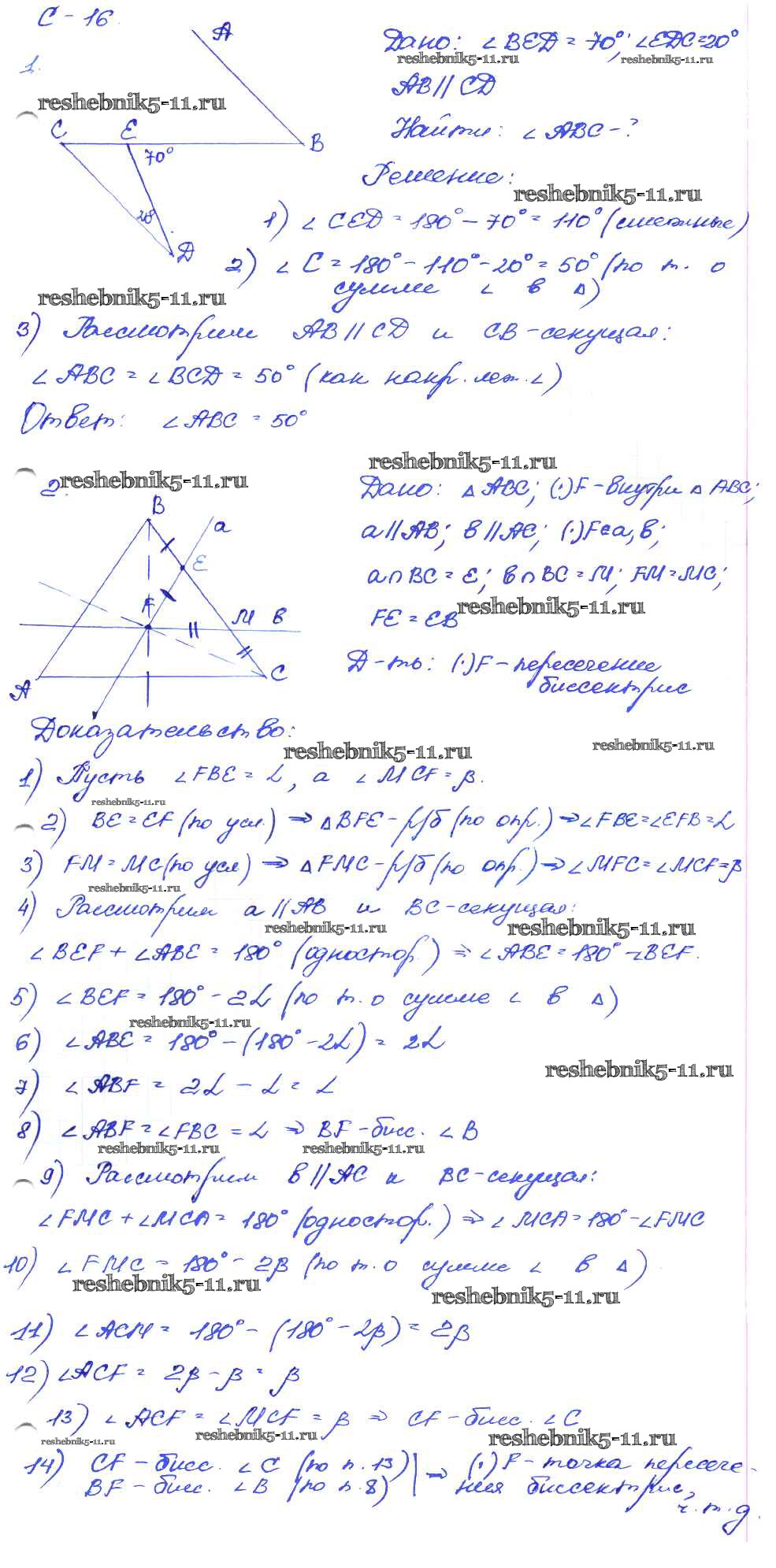 Готовая домашняя работа с ответами по Геометрии за 7 класс Зив, Мейлер Дидактические материалы Просвещение 2016 ФГОС - СР-16. Варианты 5