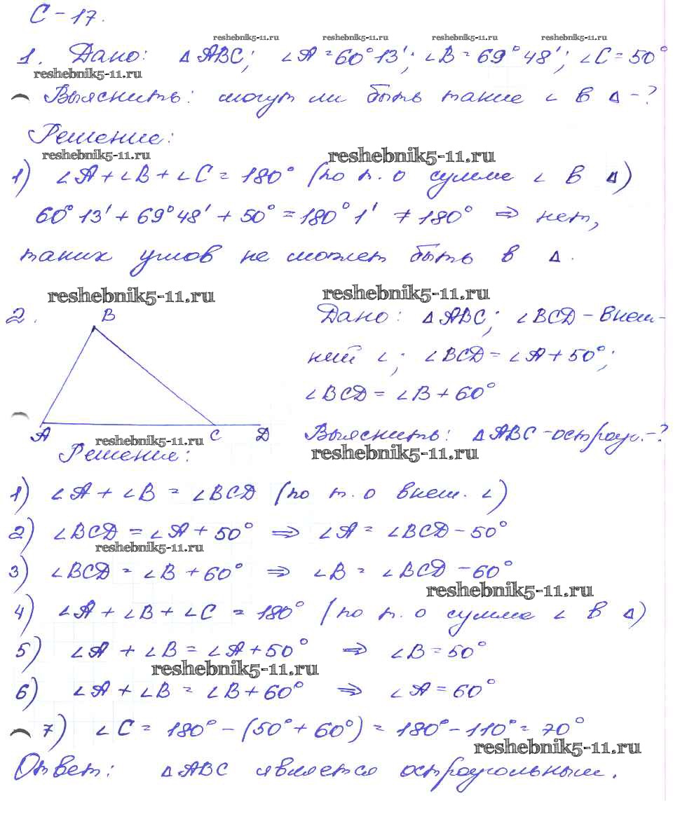 Готовая домашняя работа с ответами по Геометрии за 7 класс Зив, Мейлер Дидактические материалы Просвещение 2016 ФГОС - СР-17. Варианты 1