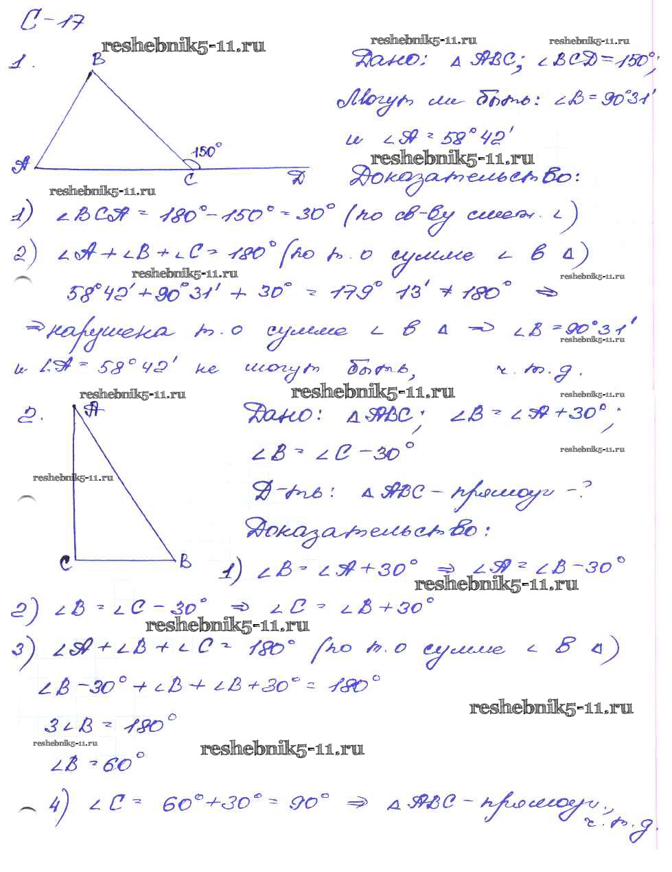 Готовая домашняя работа с ответами по Геометрии за 7 класс Зив, Мейлер Дидактические материалы Просвещение 2016 ФГОС - СР-17. Варианты 2