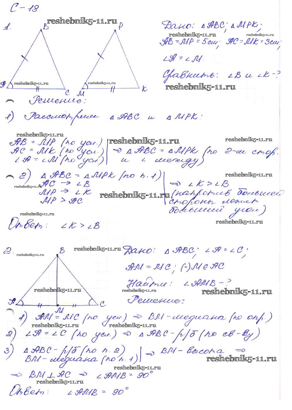 Готовая домашняя работа с ответами по Геометрии за 7 класс Зив, Мейлер Дидактические материалы Просвещение 2016 ФГОС - СР-18. Варианты 1