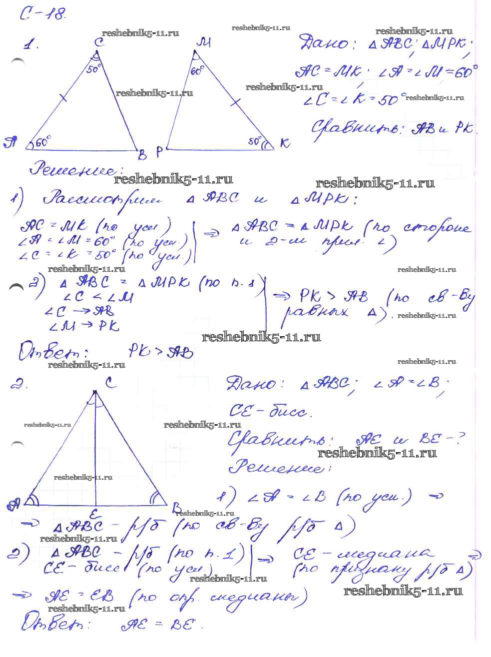 Готовая домашняя работа с ответами по Геометрии за 7 класс Зив, Мейлер Дидактические материалы Просвещение 2016 ФГОС - СР-18. Варианты 2
