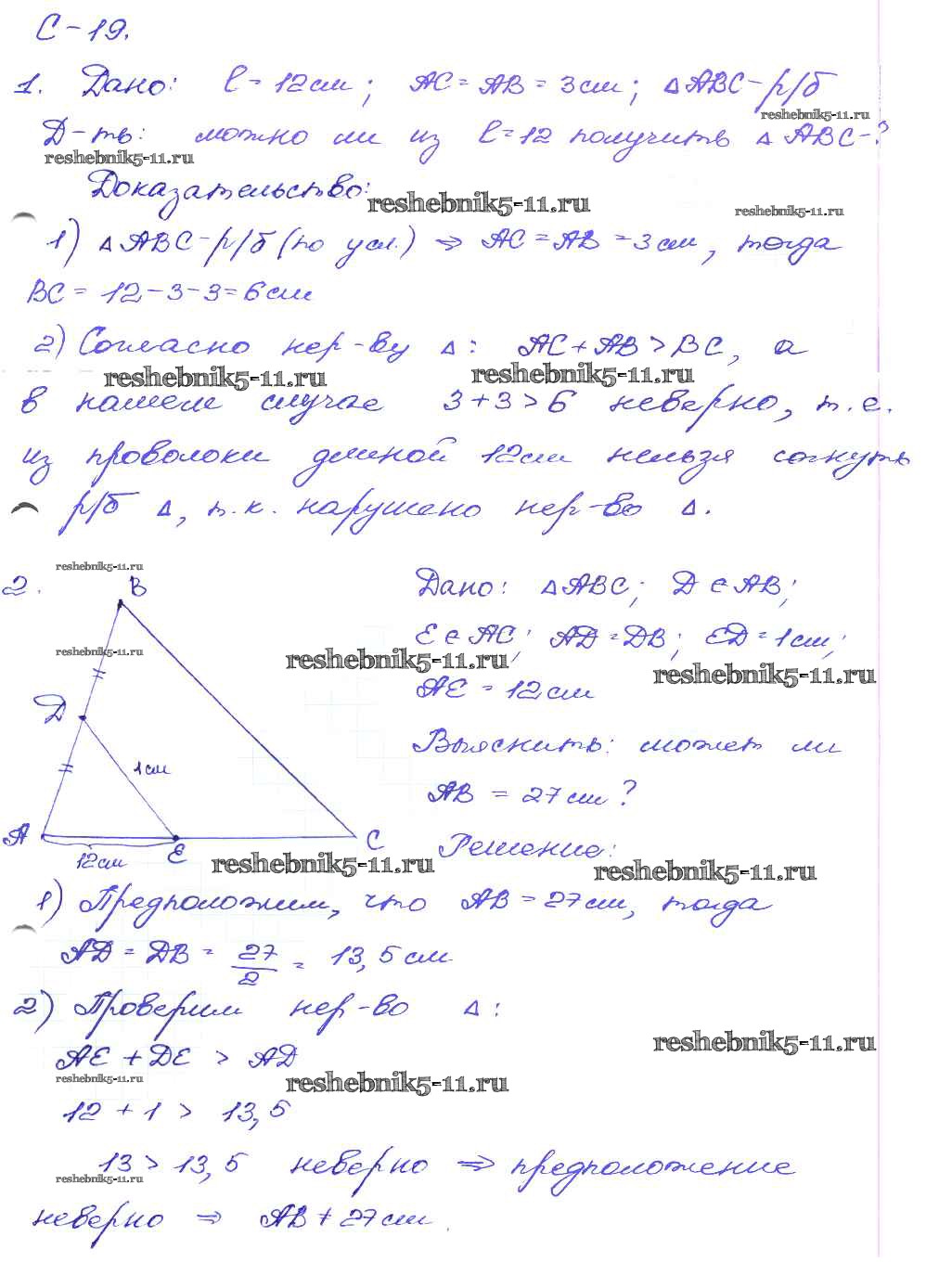 Готовая домашняя работа с ответами по Геометрии за 7 класс Зив, Мейлер Дидактические материалы Просвещение 2016 ФГОС - СР-19. Варианты 1