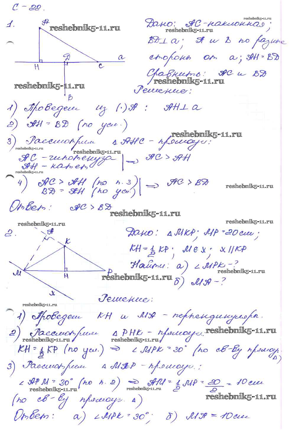 Готовая домашняя работа с ответами по Геометрии за 7 класс Зив, Мейлер Дидактические материалы Просвещение 2016 ФГОС - СР-22. Варианты 2