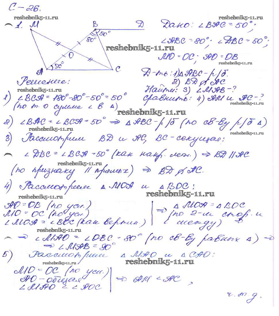 Готовая домашняя работа с ответами по Геометрии за 7 класс Зив, Мейлер Дидактические материалы Просвещение 2016 ФГОС - СР-26. Варианты 1