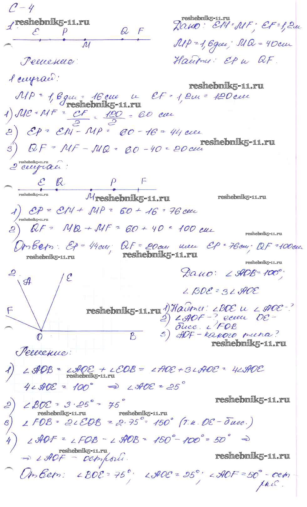 Готовая домашняя работа с ответами по Геометрии за 7 класс Зив, Мейлер Дидактические материалы Просвещение 2016 ФГОС - СР-4. Варианты 4