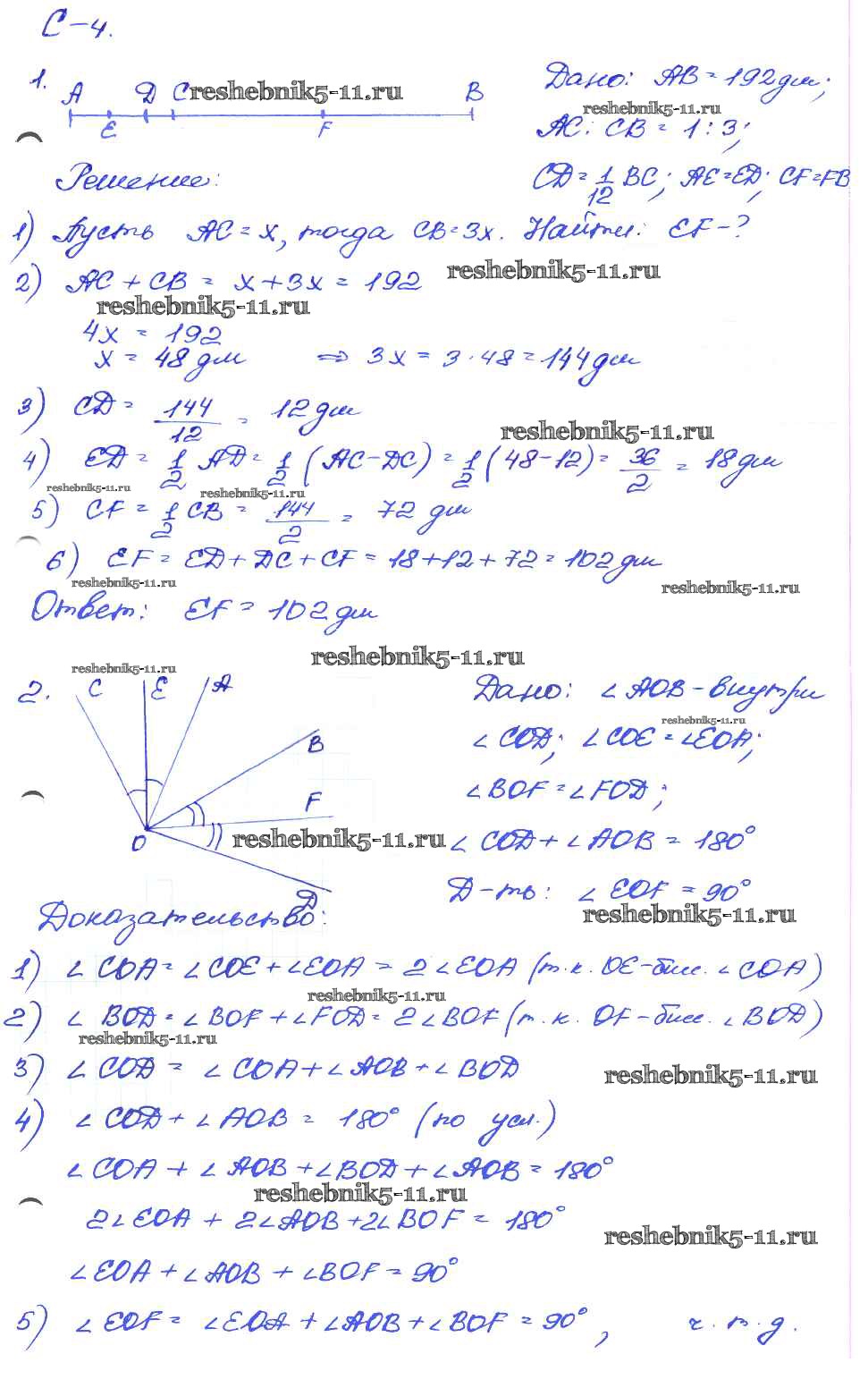 Готовая домашняя работа с ответами по Геометрии за 7 класс Зив, Мейлер Дидактические материалы Просвещение 2016 ФГОС - СР-4. Варианты 5