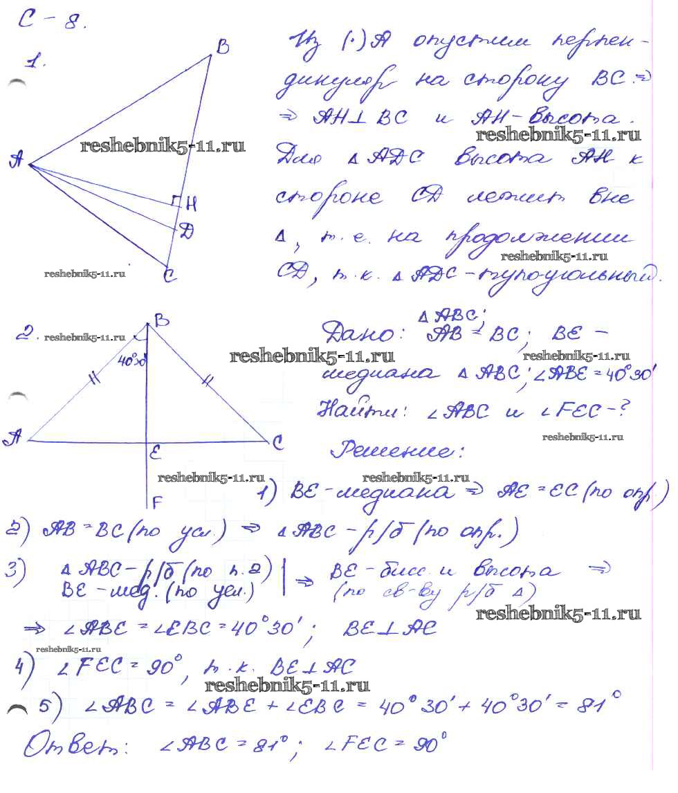 Готовая домашняя работа с ответами по Геометрии за 7 класс Зив, Мейлер Дидактические материалы Просвещение 2016 ФГОС - СР-8. Варианты 1