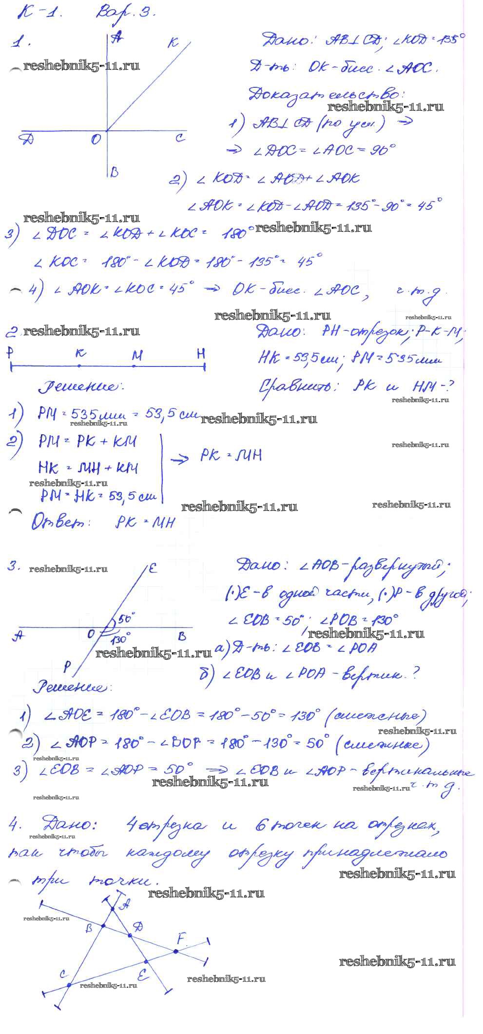 Готовая домашняя работа с ответами по Геометрии за 7 класс Зив, Мейлер Дидактические материалы Просвещение 2016 ФГОС - КР-1. Варианты 3