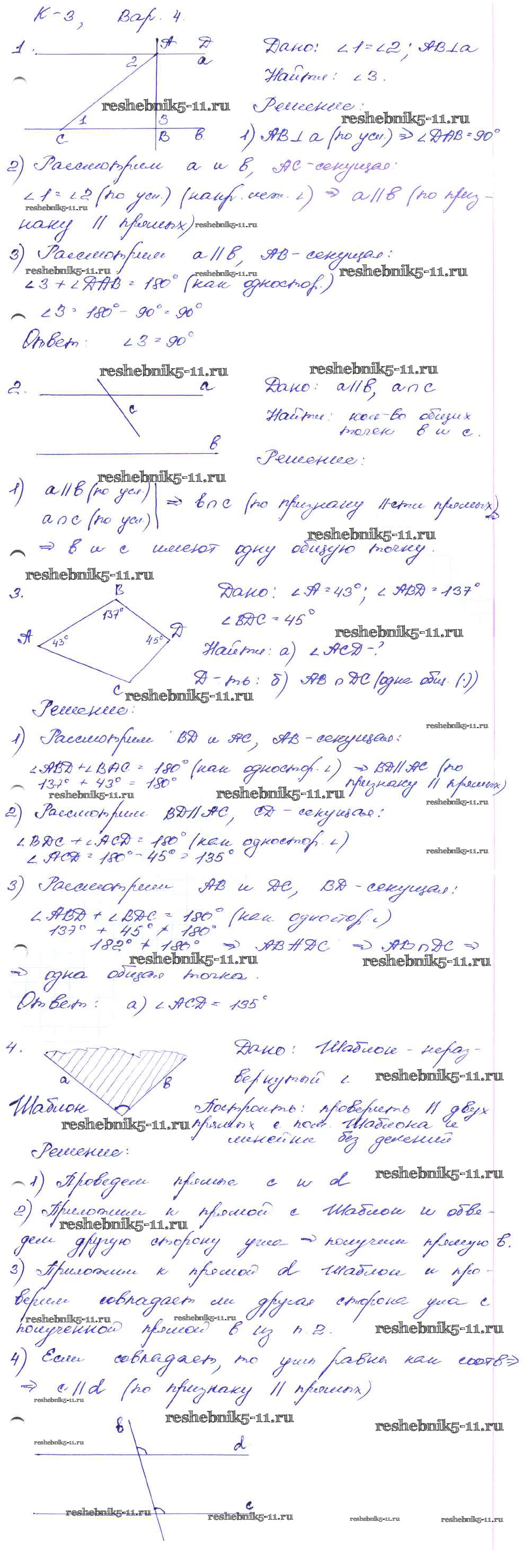 Готовая домашняя работа с ответами по Геометрии за 7 класс Зив, Мейлер Дидактические материалы Просвещение 2016 ФГОС - КР-3. Варианты 4