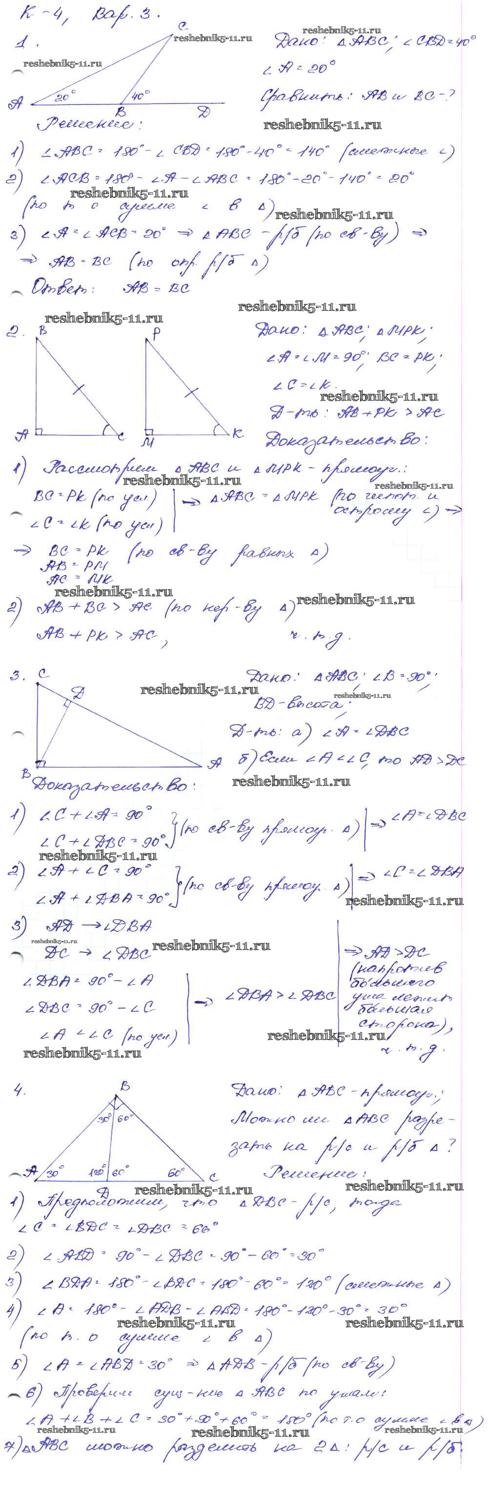 Готовая домашняя работа с ответами по Геометрии за 7 класс Зив, Мейлер Дидактические материалы Просвещение 2016 ФГОС - КР-4. Варианты 3