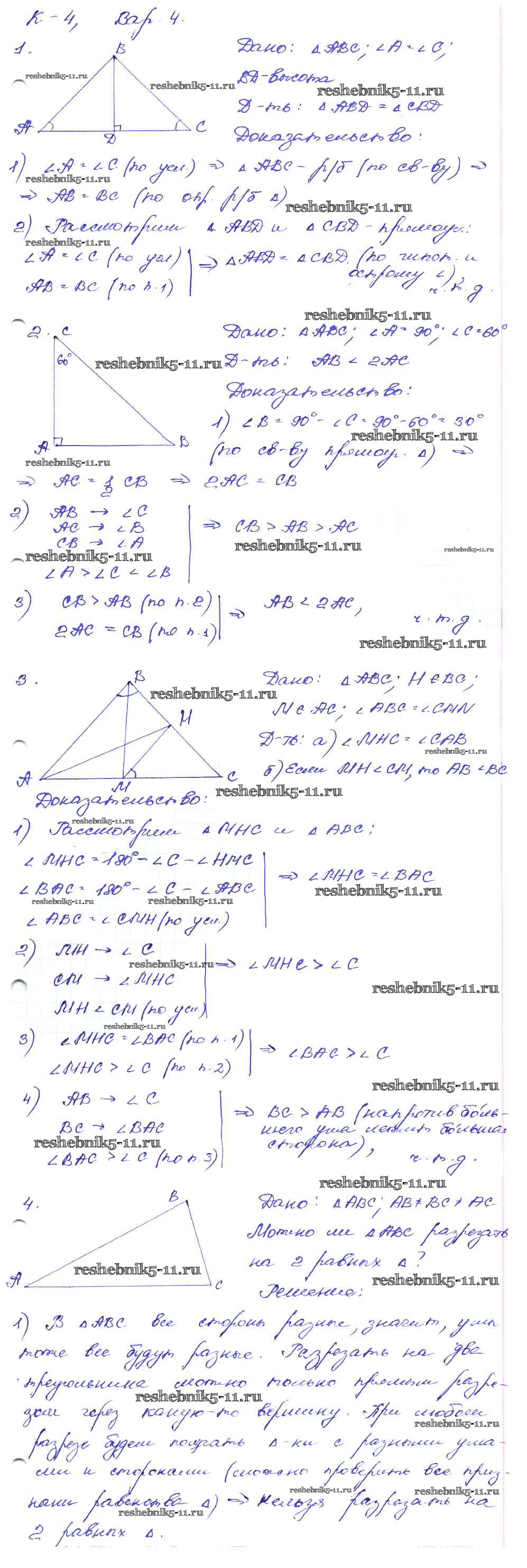 Готовая домашняя работа с ответами по Геометрии за 7 класс Зив, Мейлер Дидактические материалы Просвещение 2016 ФГОС - КР-4. Варианты 4