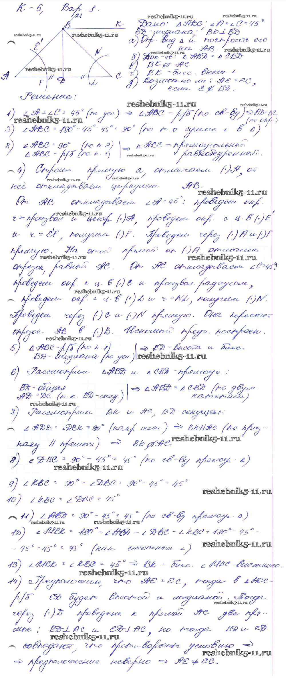 Готовая домашняя работа с ответами по Геометрии за 7 класс Зив, Мейлер Дидактические материалы Просвещение 2016 ФГОС - КР-5. Варианты 1