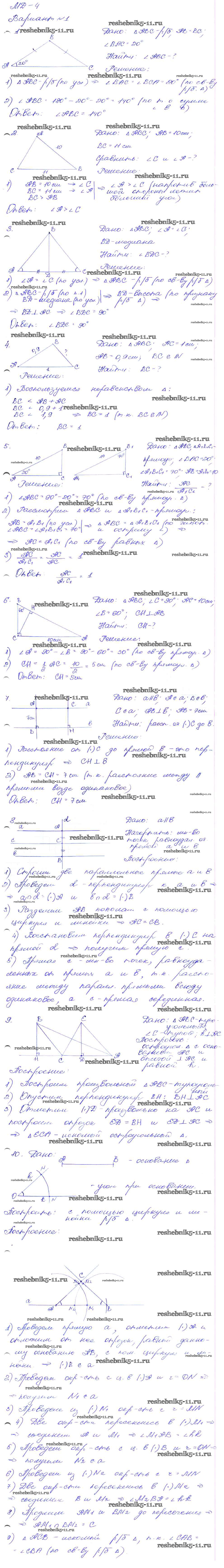 Готовая домашняя работа с ответами по Геометрии за 7 класс Зив, Мейлер Дидактические материалы Просвещение 2016 ФГОС - МД-4. Варианты 1