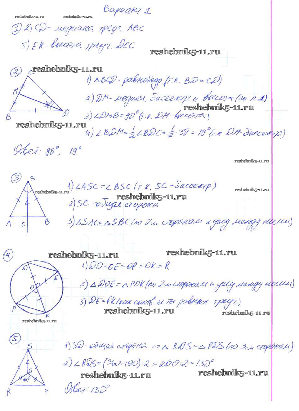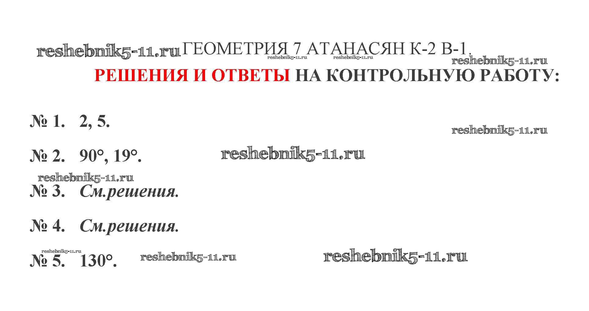 Готовая домашняя работа с ответами по Геометрии за 7 класс Мельникова Контрольные работы УМК Экзамен 2016 ФГОС - КР-2. Варианты 1