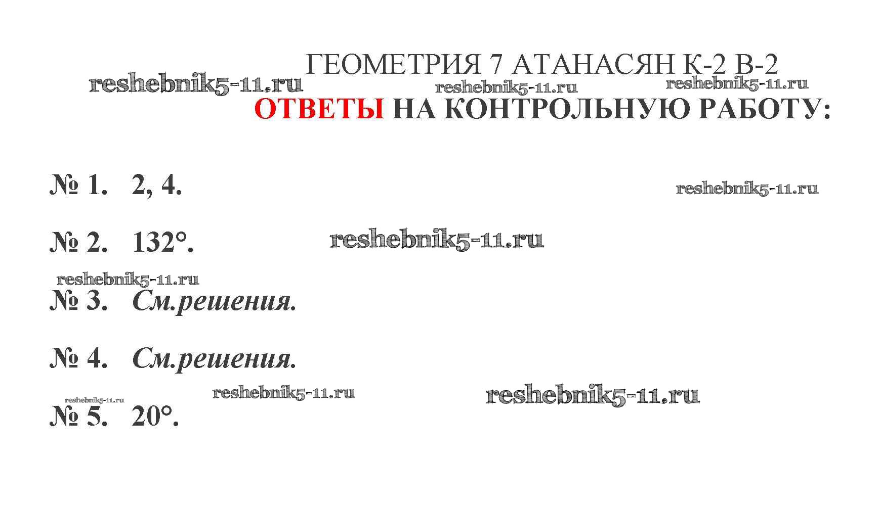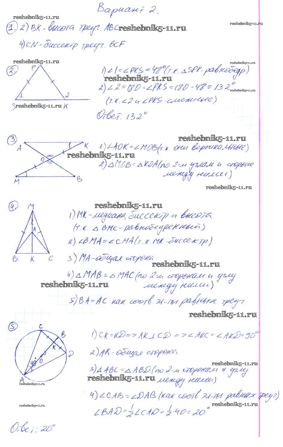 Готовая домашняя работа с ответами по Геометрии за 7 класс Мельникова Контрольные работы УМК Экзамен 2016 ФГОС - КР-2. Варианты 2