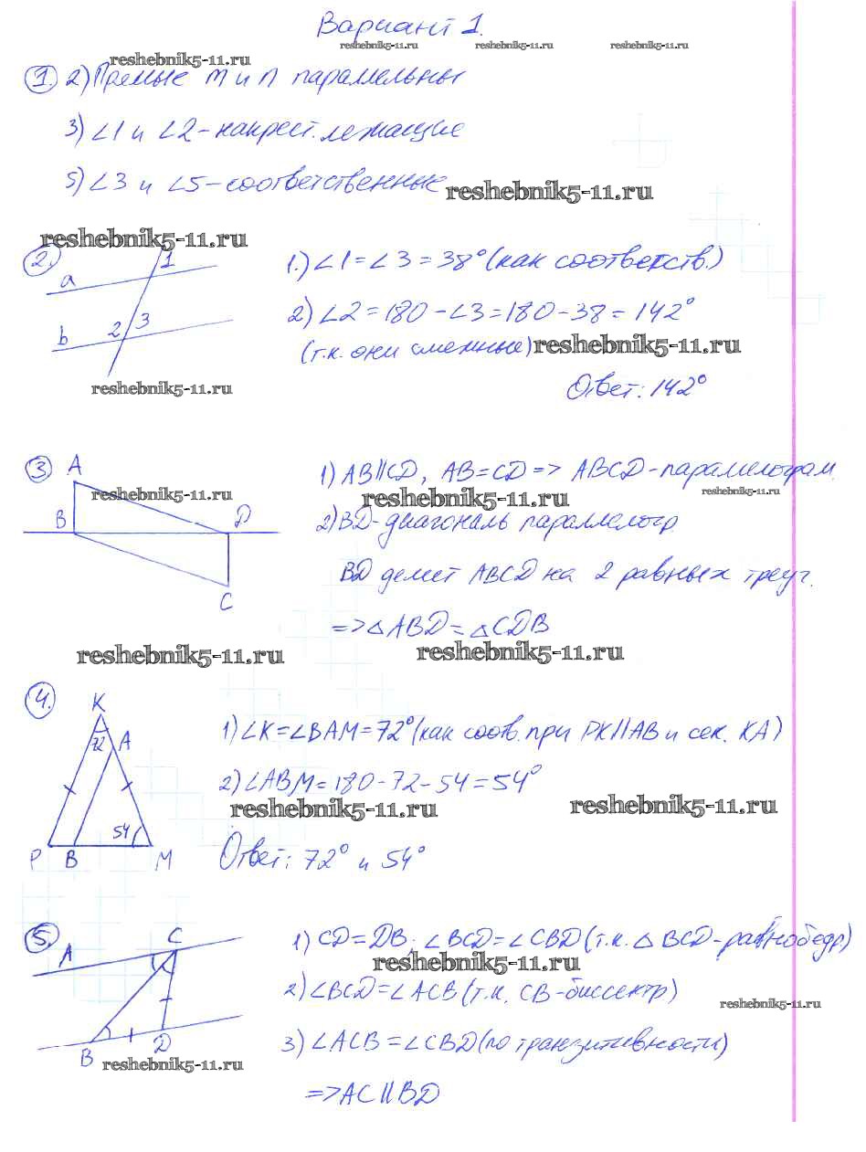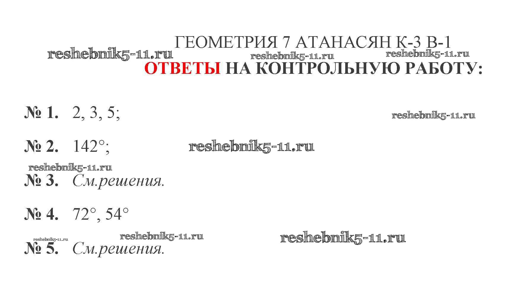 Готовая домашняя работа с ответами по Геометрии за 7 класс Мельникова Контрольные работы УМК Экзамен 2016 ФГОС - КР-3. Варианты 1