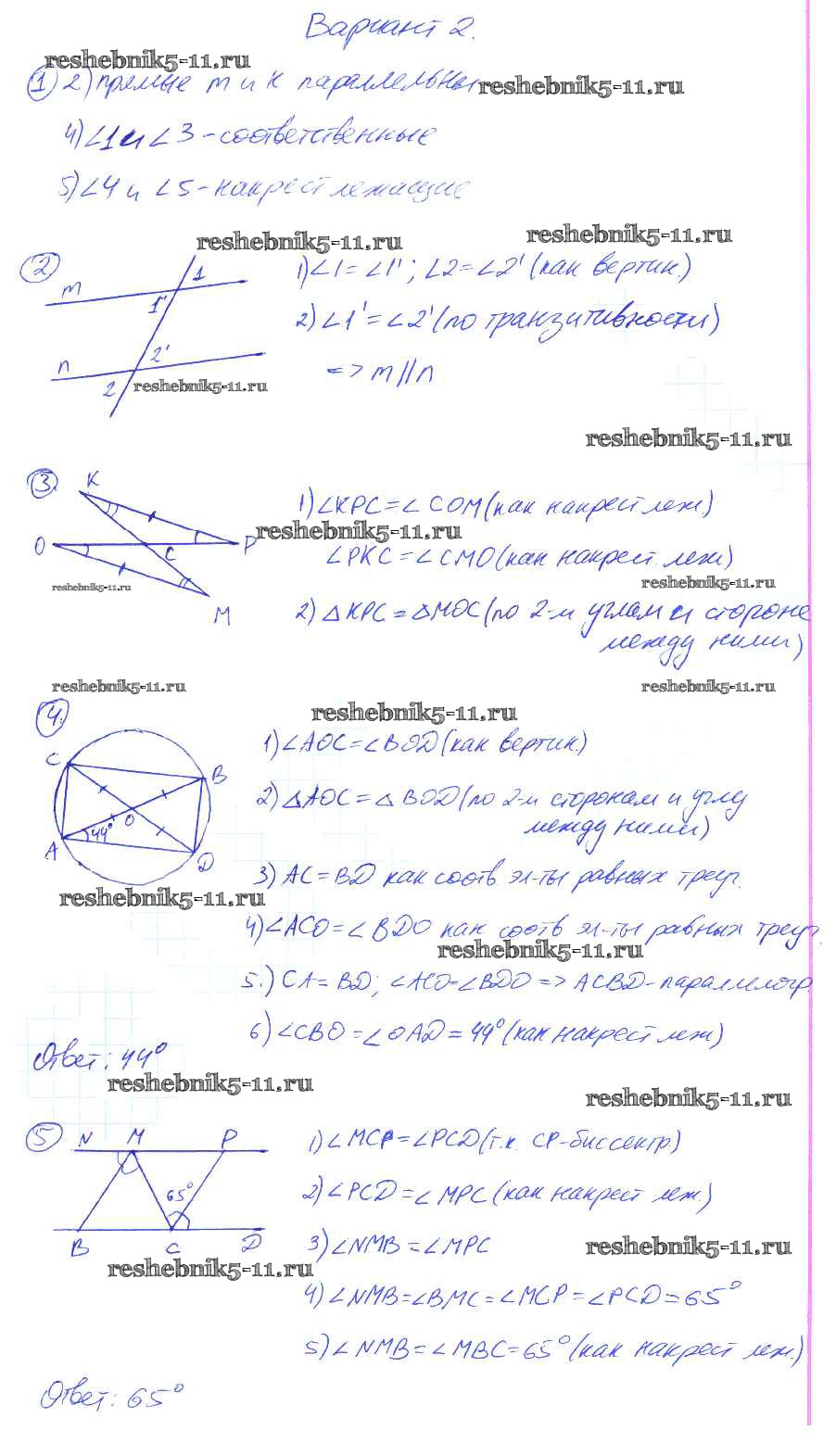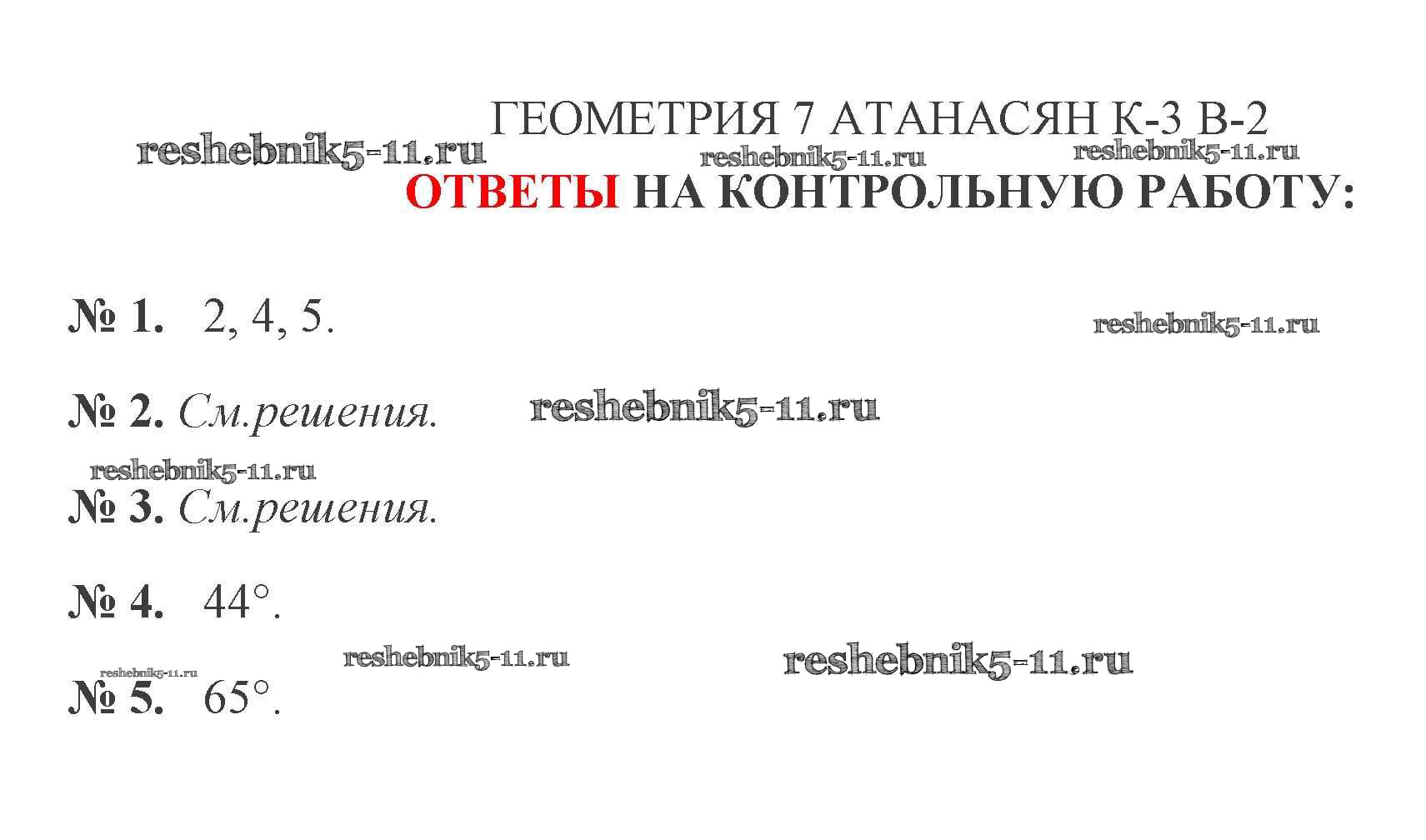 Готовая домашняя работа с ответами по Геометрии за 7 класс Мельникова Контрольные работы УМК Экзамен 2016 ФГОС - КР-3. Варианты 2
