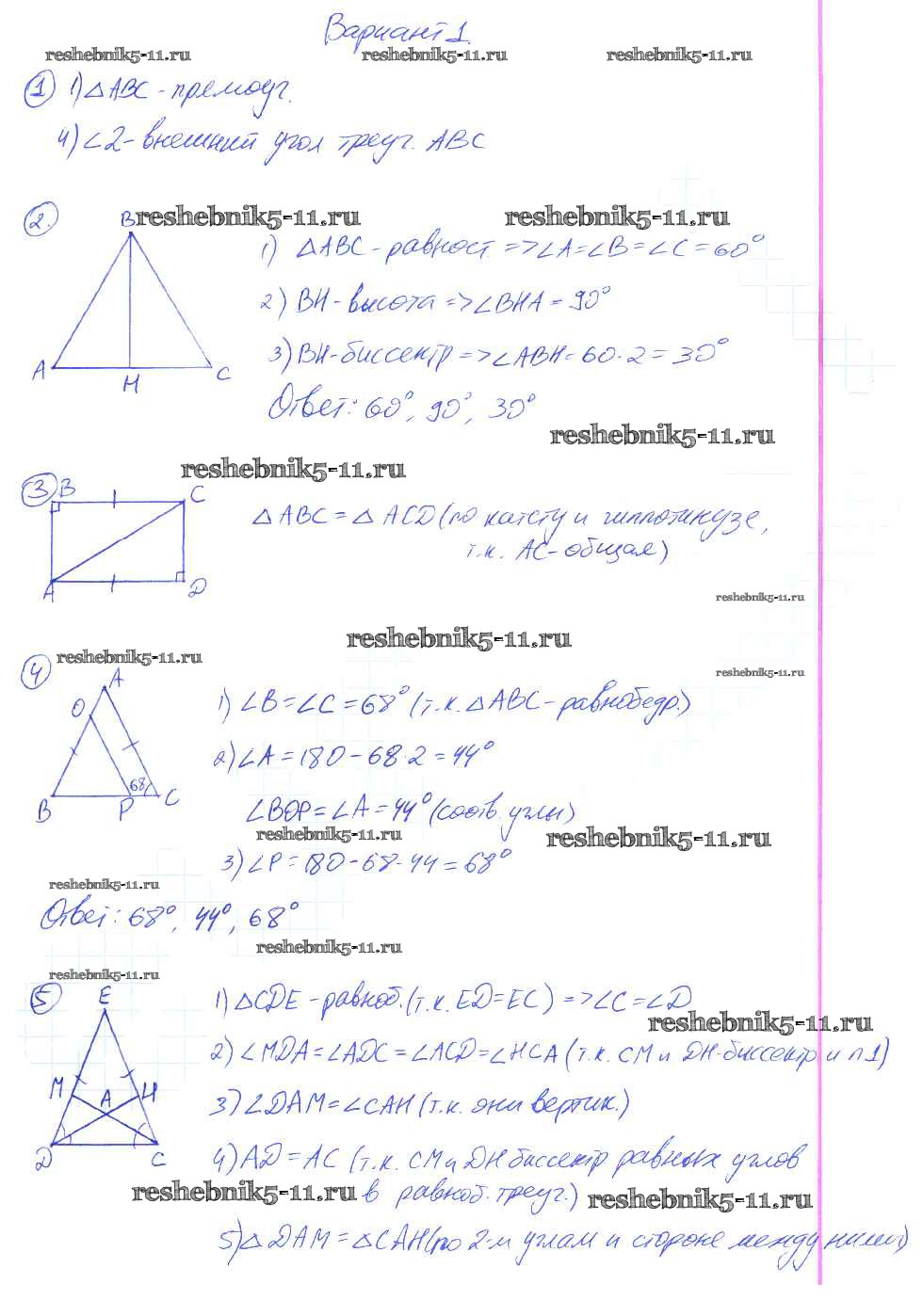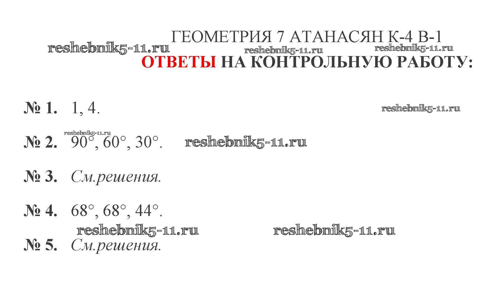 Готовая домашняя работа с ответами по Геометрии за 7 класс Мельникова Контрольные работы УМК Экзамен 2016 ФГОС - КР-4. Варианты 1