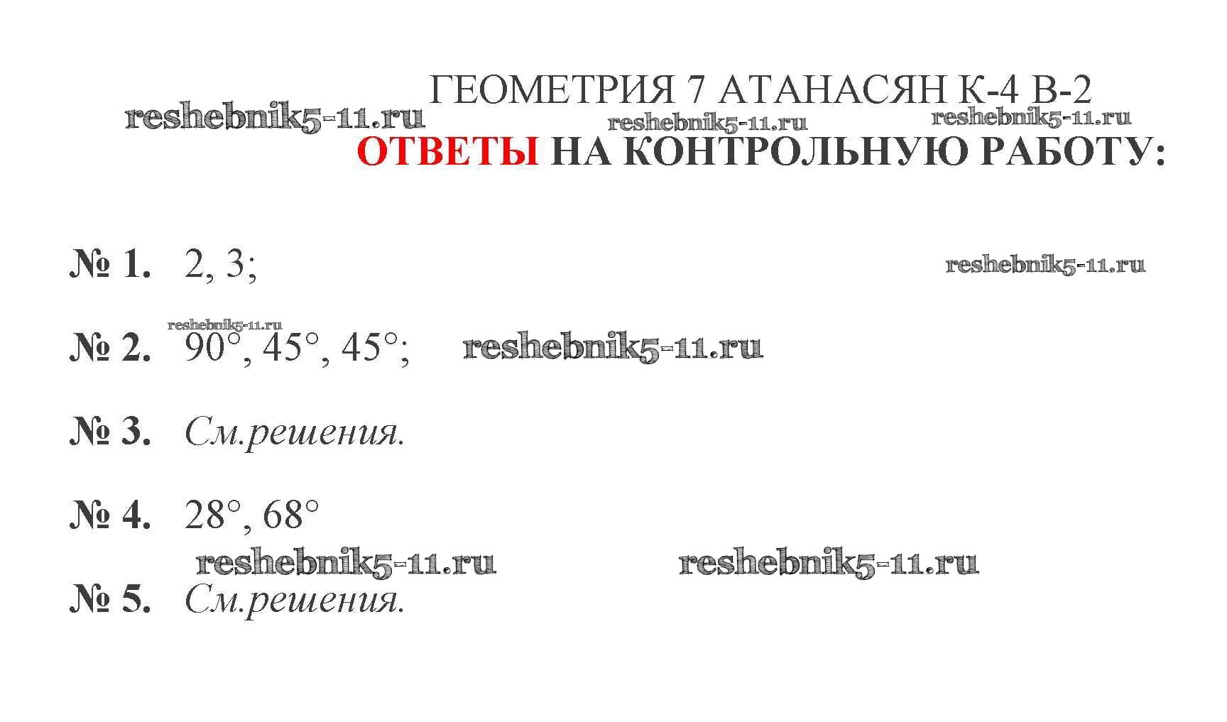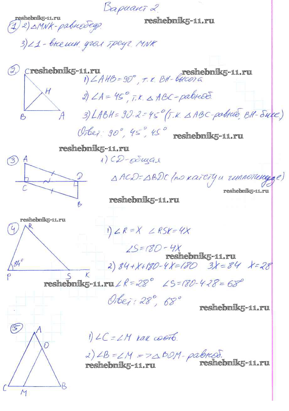 Готовая домашняя работа с ответами по Геометрии за 7 класс Мельникова Контрольные работы УМК Экзамен 2016 ФГОС - КР-4. Варианты 2
