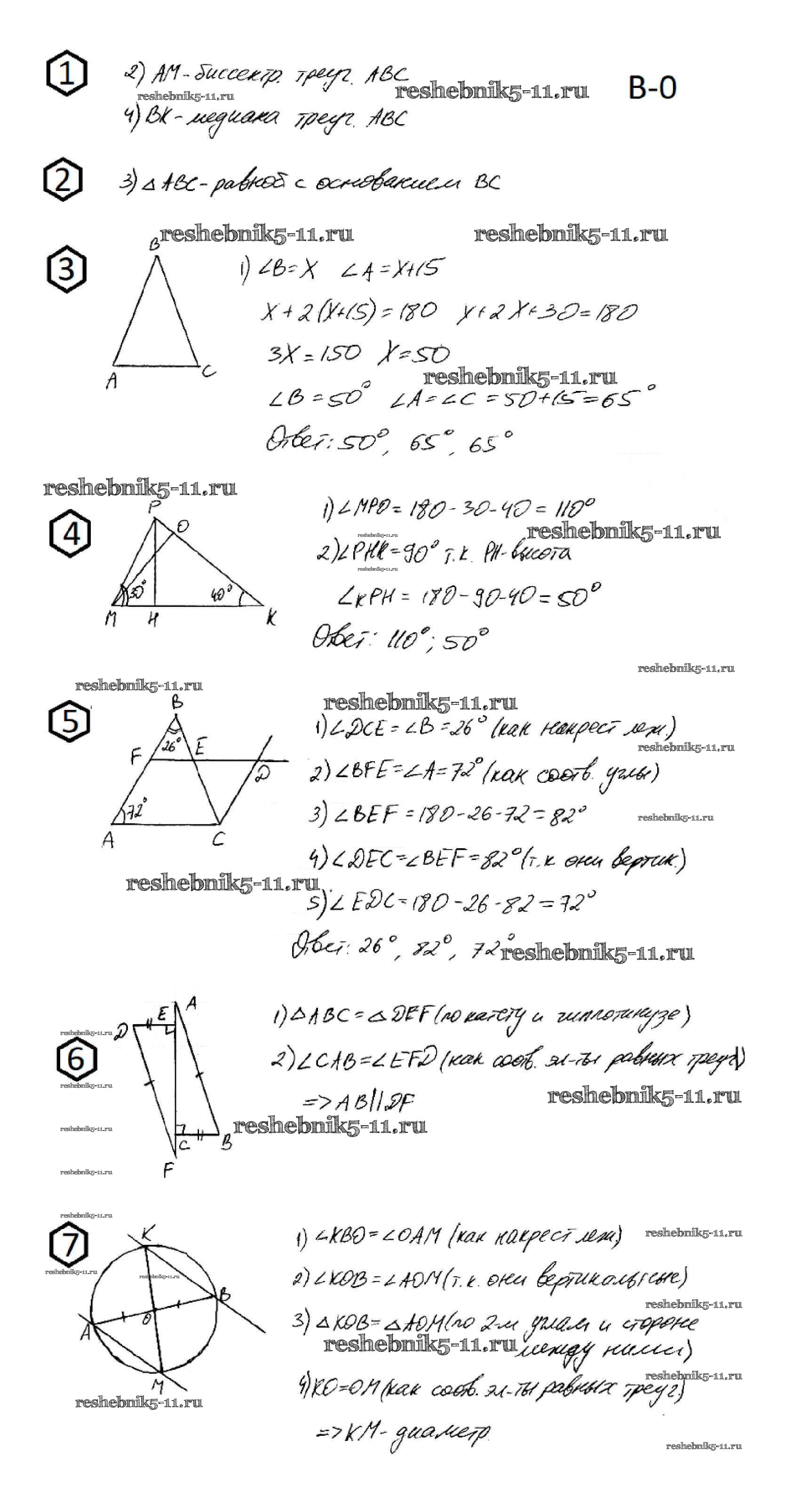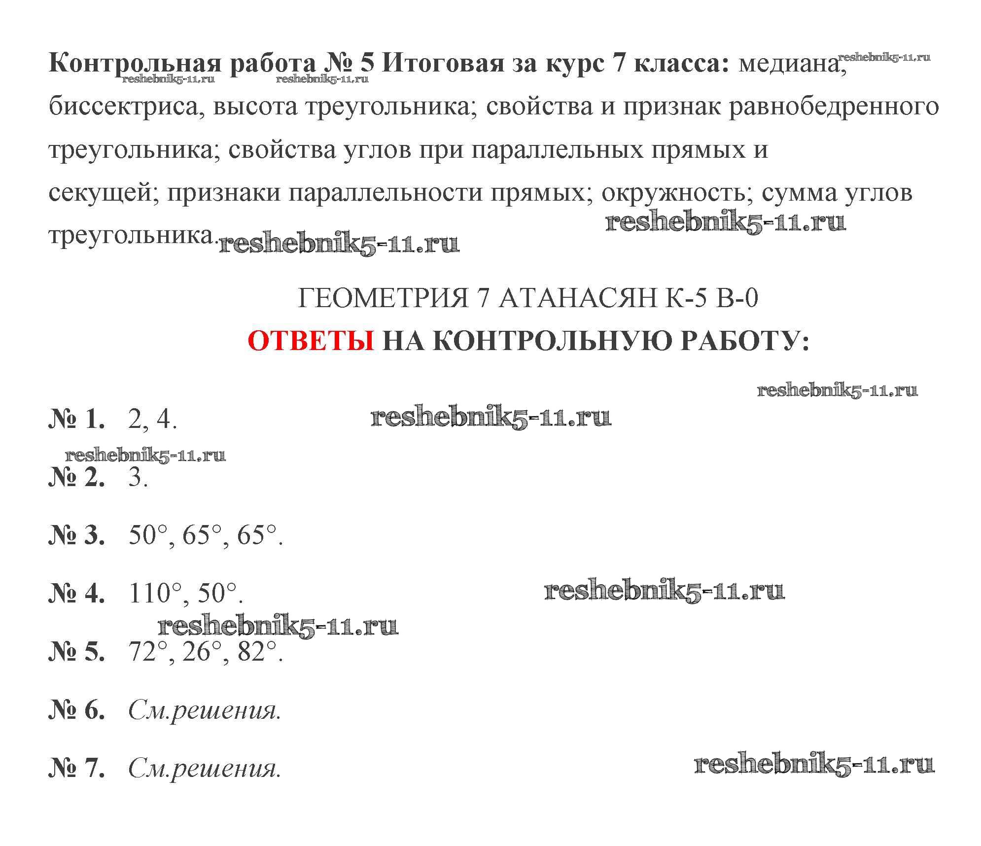Готовая домашняя работа с ответами по Геометрии за 7 класс Мельникова Контрольные работы УМК Экзамен 2016 ФГОС - КР-5. Варианты Подготовка