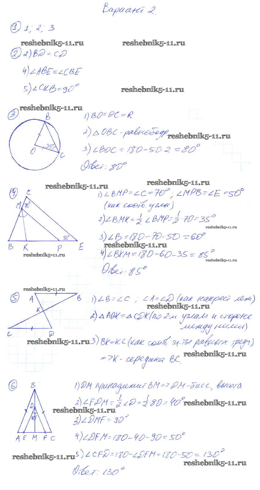 Готовая домашняя работа с ответами по Геометрии за 7 класс Мельникова Контрольные работы УМК Экзамен 2016 ФГОС - КР-5. Варианты 2