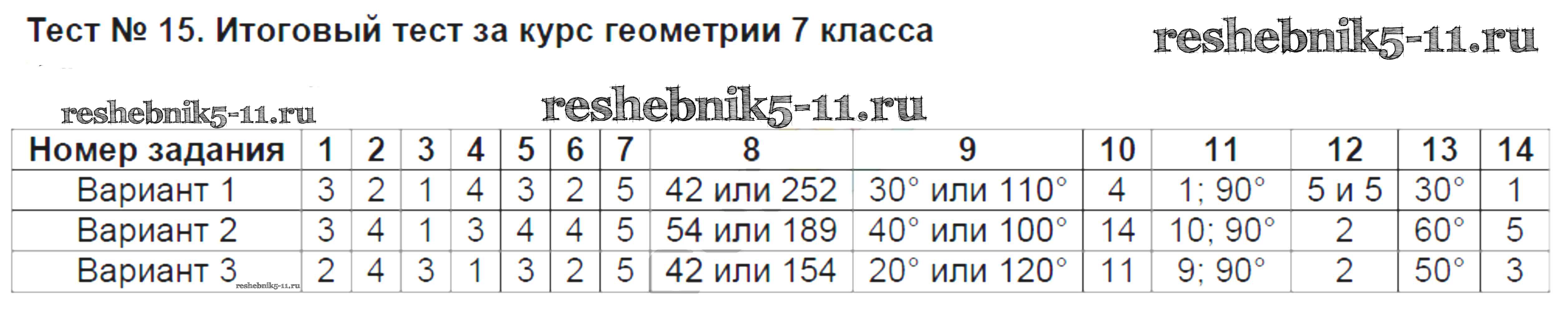 Готовая домашняя работа с ответами по Геометрии за 7 класс Рязановский, Мухин Контрольно-измерительные материалы (КИМ) Экзамен 2014 ФГОС - Тесты 15