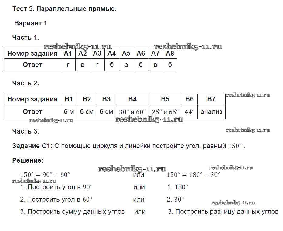 Готовая домашняя работа с ответами по Геометрии за 7 класс Фарков Тесты УМК Экзамен 2015 ФГОС - Глава 5. Варианты 1