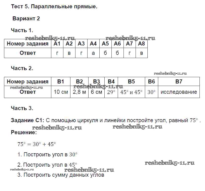 Готовая домашняя работа с ответами по Геометрии за 7 класс Фарков Тесты УМК Экзамен 2015 ФГОС - Глава 5. Варианты 2