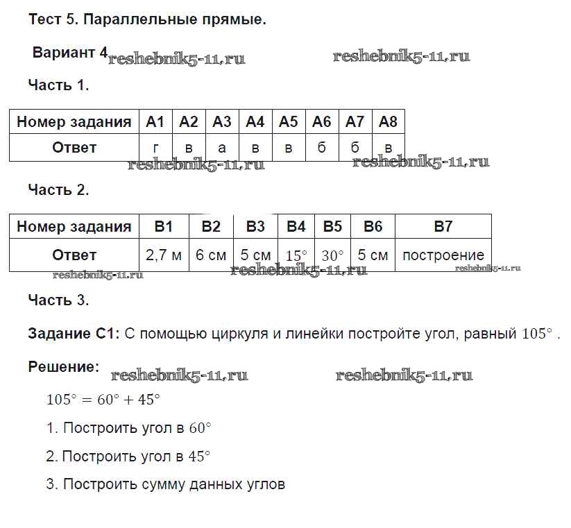 Готовая домашняя работа с ответами по Геометрии за 7 класс Фарков Тесты УМК Экзамен 2015 ФГОС - Глава 5. Варианты 4