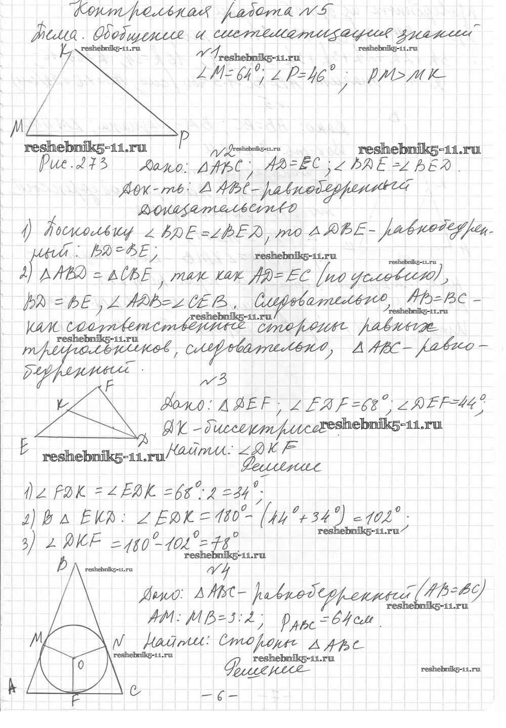Готовая домашняя работа с ответами по Геометрии за 7 класс Мерзляк, Полонский, Рабинович, Якир Дидактические материалы Алгоритм успеха Вентана-граф 2017 ФГОС - Вариант 1 КР-5