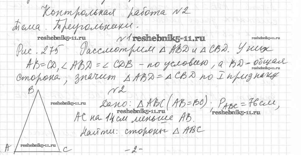 Готовая домашняя работа с ответами по Геометрии за 7 класс Мерзляк, Полонский, Рабинович, Якир Дидактические материалы Алгоритм успеха Вентана-граф 2017 ФГОС - Вариант 2 КР-2