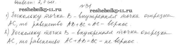 Готовая домашняя работа с ответами по Геометрии за 7 класс Мерзляк, Полонский, Якир Учебник Алгоритм успеха Вентана-граф 2017 ФГОС - §2. Отрезок и его длина 31