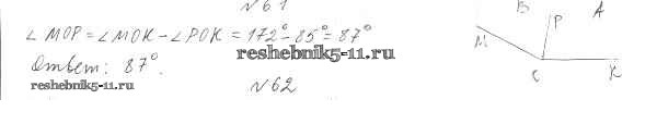 Готовая домашняя работа с ответами по Геометрии за 7 класс Мерзляк, Полонский, Якир Учебник Алгоритм успеха Вентана-граф 2017 ФГОС - §3. Луч. Угол. Измерение углов 61