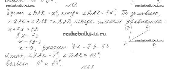 Готовая домашняя работа с ответами по Геометрии за 7 класс Мерзляк, Полонский, Якир Учебник Алгоритм успеха Вентана-граф 2017 ФГОС - §3. Луч. Угол. Измерение углов 66