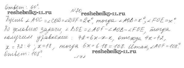 Готовая домашняя работа с ответами по Геометрии за 7 класс Мерзляк, Полонский, Якир Учебник Алгоритм успеха Вентана-граф 2017 ФГОС - §3. Луч. Угол. Измерение углов 70