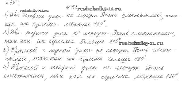 Готовая домашняя работа с ответами по Геометрии за 7 класс Мерзляк, Полонский, Якир Учебник Алгоритм успеха Вентана-граф 2017 ФГОС - §4. Смежные и вертикальные углы 93