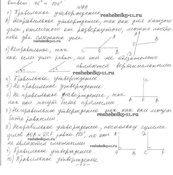 Готовая домашняя работа с ответами по Геометрии за 7 класс Мерзляк, Полонский, Якир Учебник Алгоритм успеха Вентана-граф 2017 ФГОС - §4. Смежные и вертикальные углы 99
